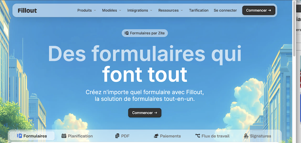 Fillout, c’est le créateur de formulaires qui fait tout : contact, diagnostic, quiz, prise de rendez-vous, paiement, sans une ligne de code. Logique conditionnelle, intégrations Notion, Airtable et Stripe, et un plan gratuit vraiment bluffant !